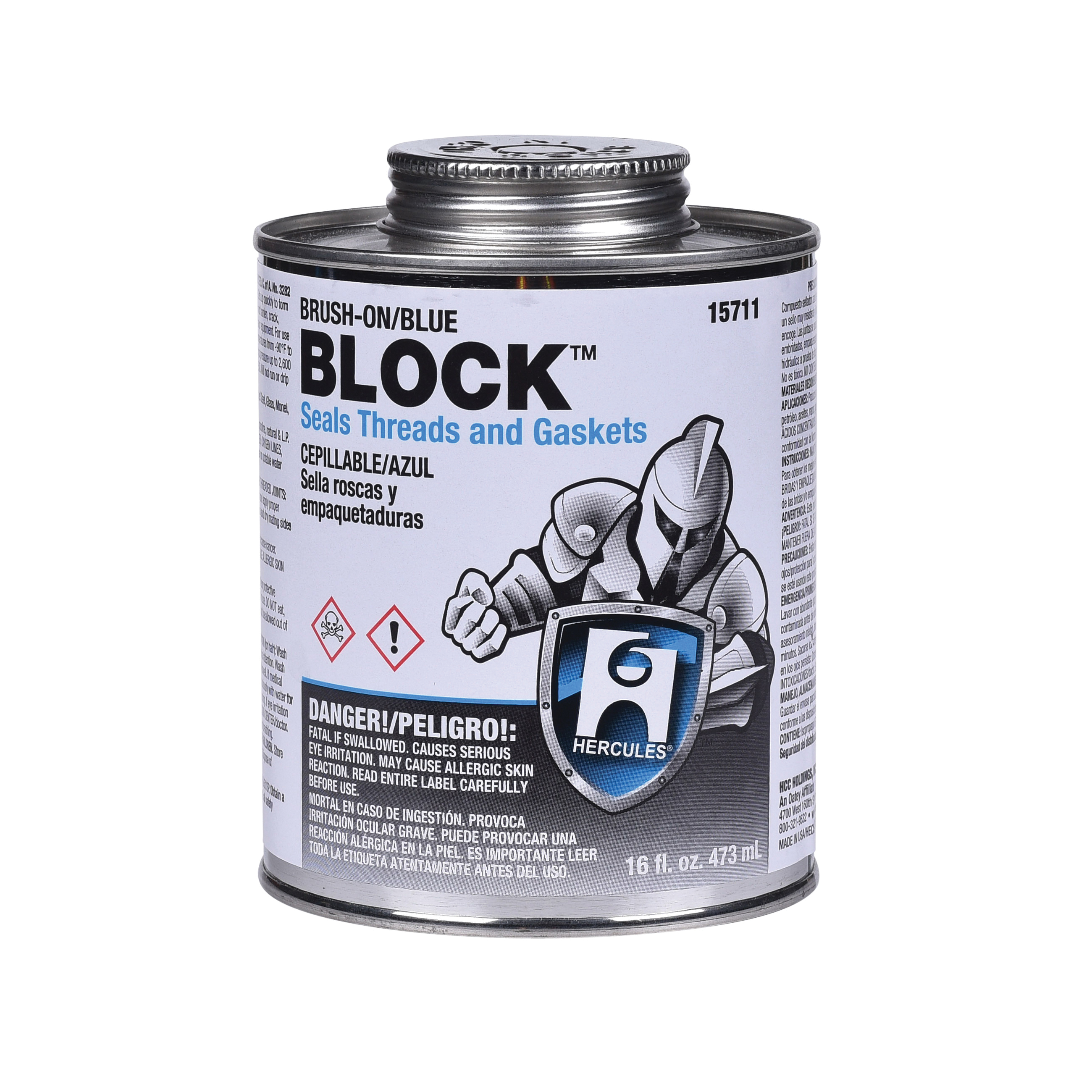 Hercules® Brush-on Block™ 15711 Multi-Purpose Thread and Gasket Sealant, 16 oz Screw Cap Can with Brush, Blue