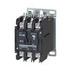 EATON Definite Purpose Control Contactor, Non-Reversing, 110 to 120 VAC Coil, 40 A Inductive, 50 A Resistive Maximum Load Current, 3 Pole, 50/60 Hz, Quick-Joint, Box Lugs/Quick-Connect Terminal, Open with Metal Mounting Plate, 3.35 in L x 2.4 in W x 3.75 in H