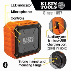 Klein® Jobsite Speaker, Wireless, Wireless Speaker, 3-7/8 in L x 2-1/8 in W x 3-1/2 in H Dimensions