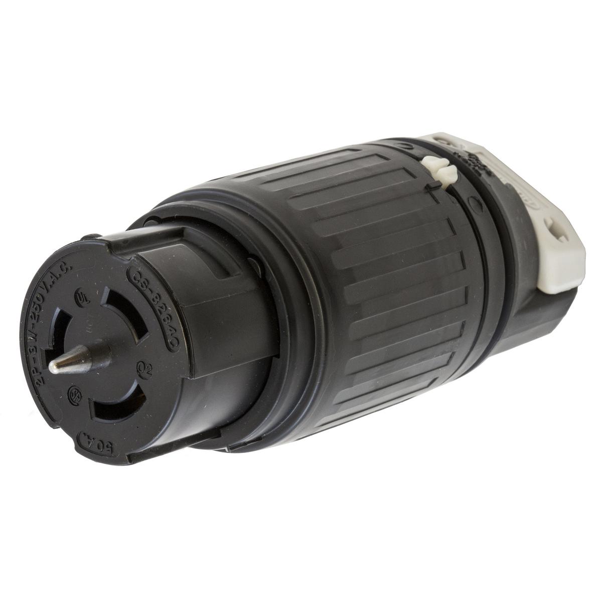 Wiring Device-Kellems Twist-Lock® Insulgrip® CS8265C 1-Phase Grounding Cord Mount Locking Plug, 250 VAC, 50 A, 2 Poles, 3 Wires, Black/White