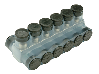 Penn-Union IPB-NA350-6T Aluminum Clear Pre-Insulated Power Bar - Six Ports with Double Sided Conductor Entry 6 Str. to 350 kcmil