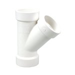DWV Reducing Wye, Fitting/Connector: Wye, 3 x 3 x 1-1/2 in Nominal, Hub End Style, PVC, White, 140 deg F Service, Domestic