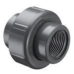 Union, Fitting/Connector: Union, 3 in Nominal, FNPT End Style, 5-1/16 in Length, SCH 80/XH Schedule, 235 psi Pressure, Molded Method of Manufacture, PVC, EPDM O-Ring Seal, Gray, 73 deg F, 5-3/4 in OD Dimensions, Domestic