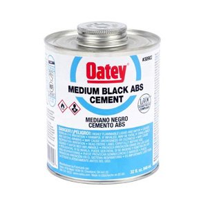 Oatey® ABS Cement, Medium Body, 32 oz Container, For Use With: All Classes and Schedules of ABS Pipe and Fittings Upto 6 in Dia with Interference Fit, Black, Solvent Odor/Scent, Composition: Methyl Ethyl Ketone, ABS Resin Acetone, 5 to 6 min Setting, 2 hr Curing, 40 to 110 deg F