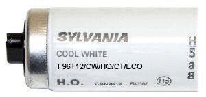 Sylvania Fluorescent Lamp, F96T12/CW/HO/CT/ECO Designation, 110 W Wattage, 153 VAC, Fluorescent Lamp, Double Contact Recessed Lamp Base, T12 Shape, 8600 Lumens, 12000 hr Average Life, Cool White Phosphor, 60 CRI, 4200 K Color Temperature, Rapid Start, 1-1/2 in L x 1-1/2 in W x 94 in H Dimensions