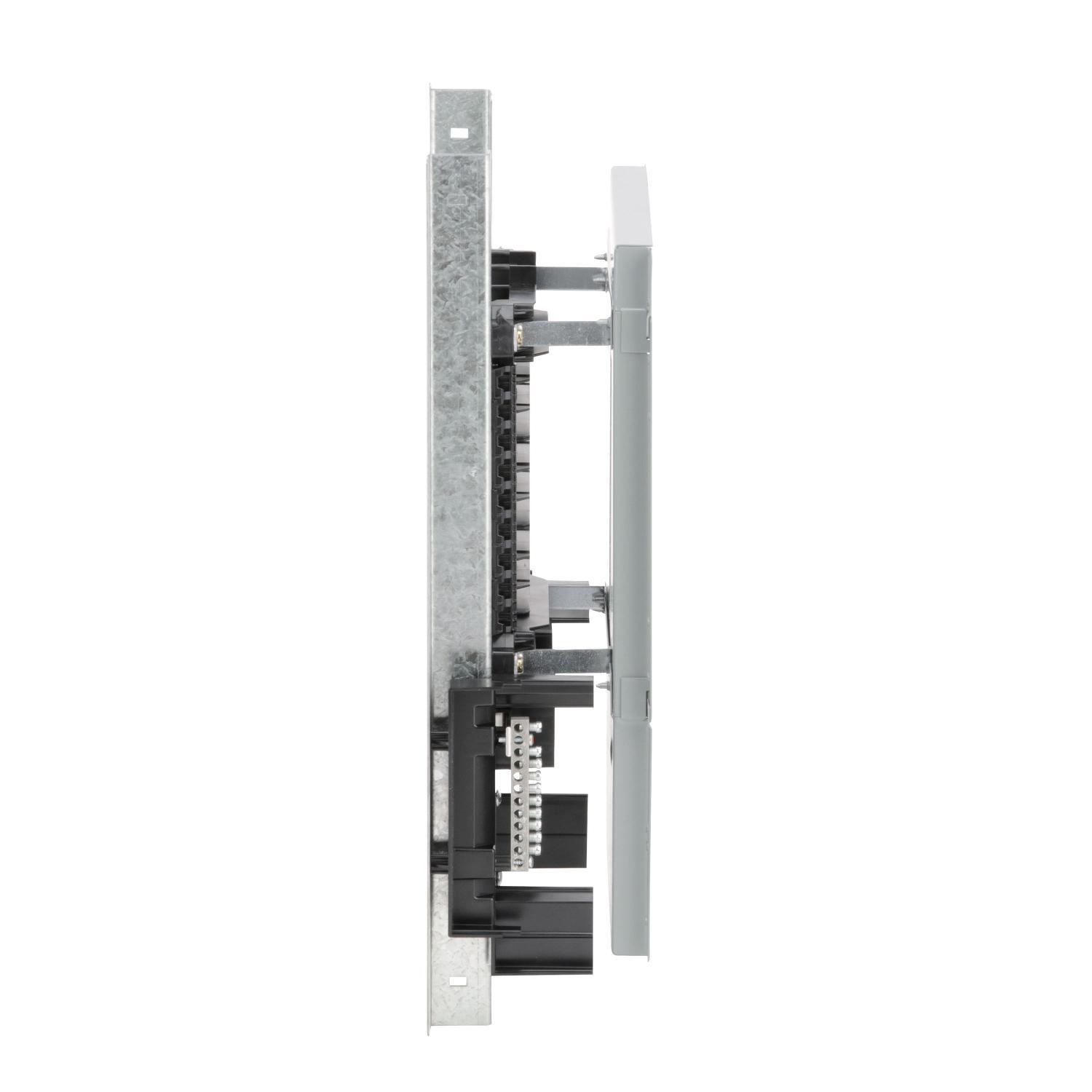 NQ Panelboard interiors may be used in a wide variety of applications including: commercial buildings; industrial buildings; data centers; stadiums; and offices. NQ Panelboards are versatile panelboards that feature a wide selection of bolt-on and plug-on branch circuit breakers, integral main circuit breakers, branch mounted SPDs, and a wide variety of ready to install accessory kits. The interiors are field convertible to support top or bottom feed. This main lugs interior is rated 100A for 240VAC and 48VDC, has a plated copper bus, and 18 pole spaces. NQ Panelboards are convertible from main lugs to main circuit breaker. NQ Panelboards offer 200% rated neutrals for nonlinear loads. Factory installed options include phenolic nameplates, power monitoring of mains and branch circuits, split bus interiors, and neutral assemblies which support up to 36 100A branch circuit breakers. NQ Panelboards are available with IP2X per IEC 60529 barriers for UL service entrance applications. Interior has an interrupt current rating of up to 65kA (depending upon the circuit breakers installed). This NQ panelboard interior is UL listed for applications in the USA and Canada. Interior accepts QOB, QOBVH and QHB bolt-on and QO, QOVH and QH plug-on branch circuit breakers. Standard mechanical main lug connections will accept copper or aluminum wire. NQ Panelboard interiors are available with plated aluminum or copper bus. 100A branch circuit breakers may be installed on both sides of NQ Panelboard interiors.