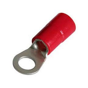 3M™ Ring Terminal, Tin Plated Copper Conductor, 22 to 18 AWG Conductor, 8 in Stud, 0.93 in Length, Butted Barrel, 0.135 in ID x 0.25 in L Barrel, 1000 VAC, -40 to 221 deg F, Red, 0.31 in W x 0.03 in THK Dimensions