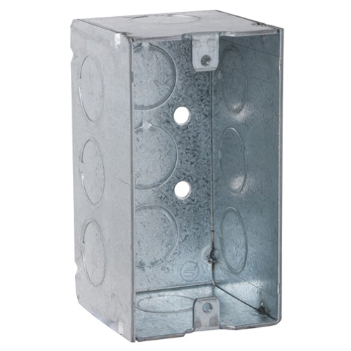 RACO® Handy Box, 1 Outlet, 1 Gang, 6 Knockouts, 1/2 in Knockout, Bolt-On/Threaded Mount, 16.5 cu-in, Steel, Pre-Galvanized, Silver, 4 in H x 2.13 in W x 2.125 in D