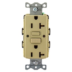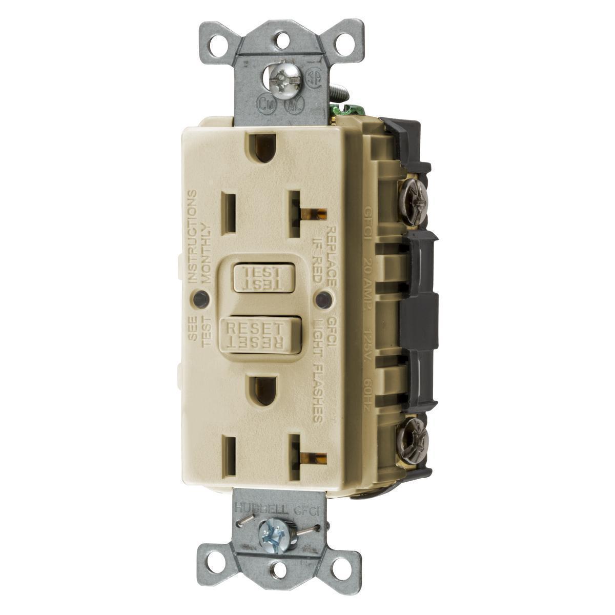 Wiring Device-Kellems GFCI Receptacle, 1-Phase Decorator Duplex Self-Test, 125 VAC, 20 A, 1 hp, 60 Hz Frequency, 2 Pole, 3 Wires, NEMA 5-20R NEMA Rating, Commercial Grade, -30 to 150 deg F, Screw Terminal, Composite/Thermoplastic, Ivory, 1.75 in W x 1.47 in D Dimensions