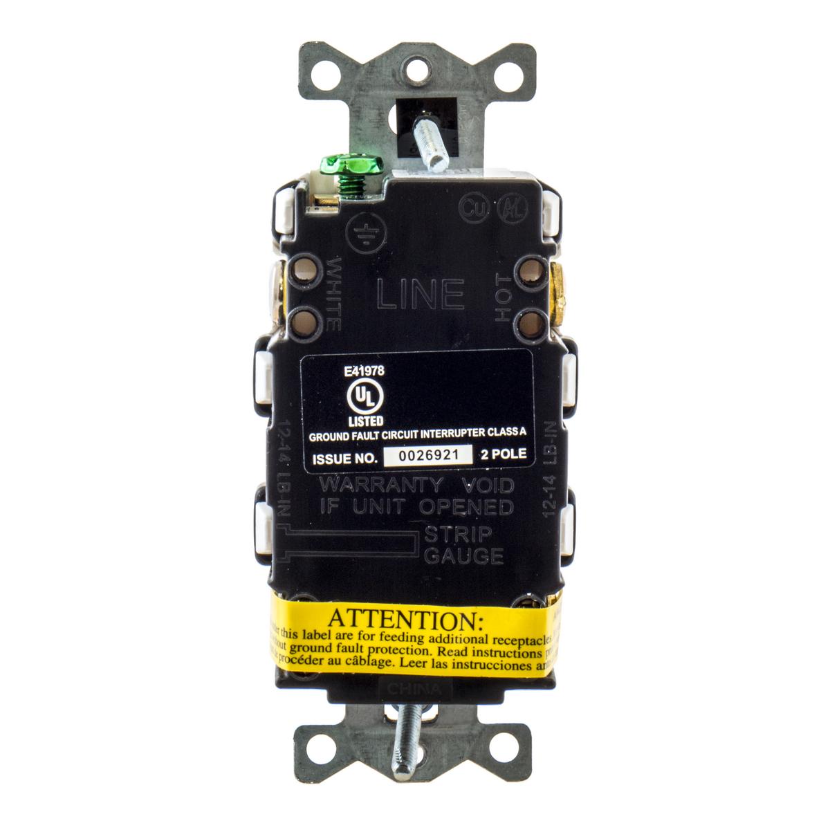 Wiring Device-Kellems AUTOGUARD® Style Line GFCI Receptacle, 1-Phase Decorator Duplex Grounding Heavy Duty Standard Self-Test, 125 VAC, 20 A, 1 hp, 60 Hz Frequency, 2 Pole, 3 Wires, NEMA 5-20R NEMA Rating, Commercial Grade, -30 to 150 deg F, Screw Terminal, Composite/Thermoplastic, White, 1.75 in W x 1.47 in D Dimensions