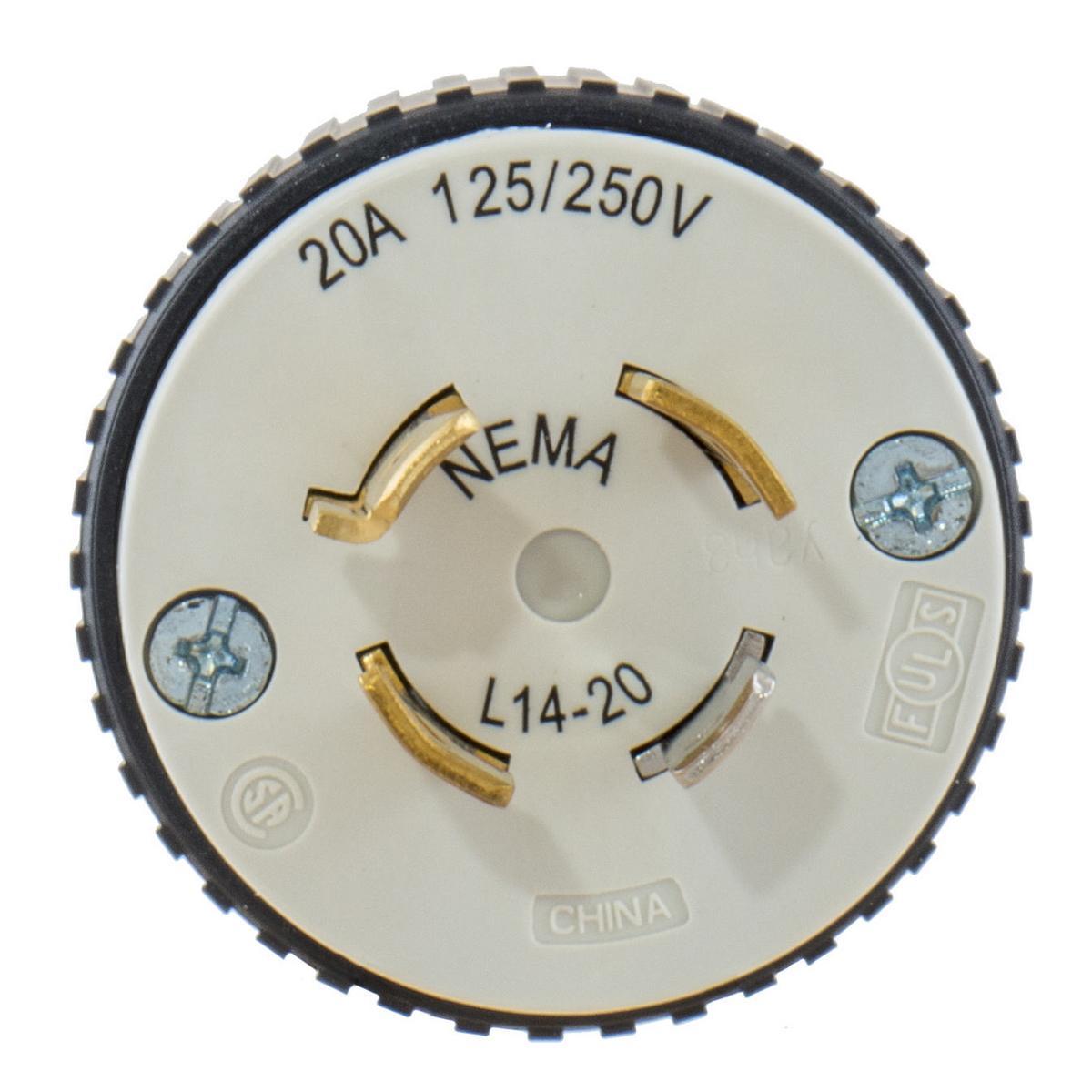 Wiring Device-Kellems Twist-Lock® Locking Male Plug, 1-Phase Grounding Standard Sized Cord Mount, 125/250 VAC, 20 A, 3 Pole, 4 Wires, L14-20P NEMA Rating, Commercial/Industrial Grade, -40 to 60 deg C, Screw Terminal, Composite, Black