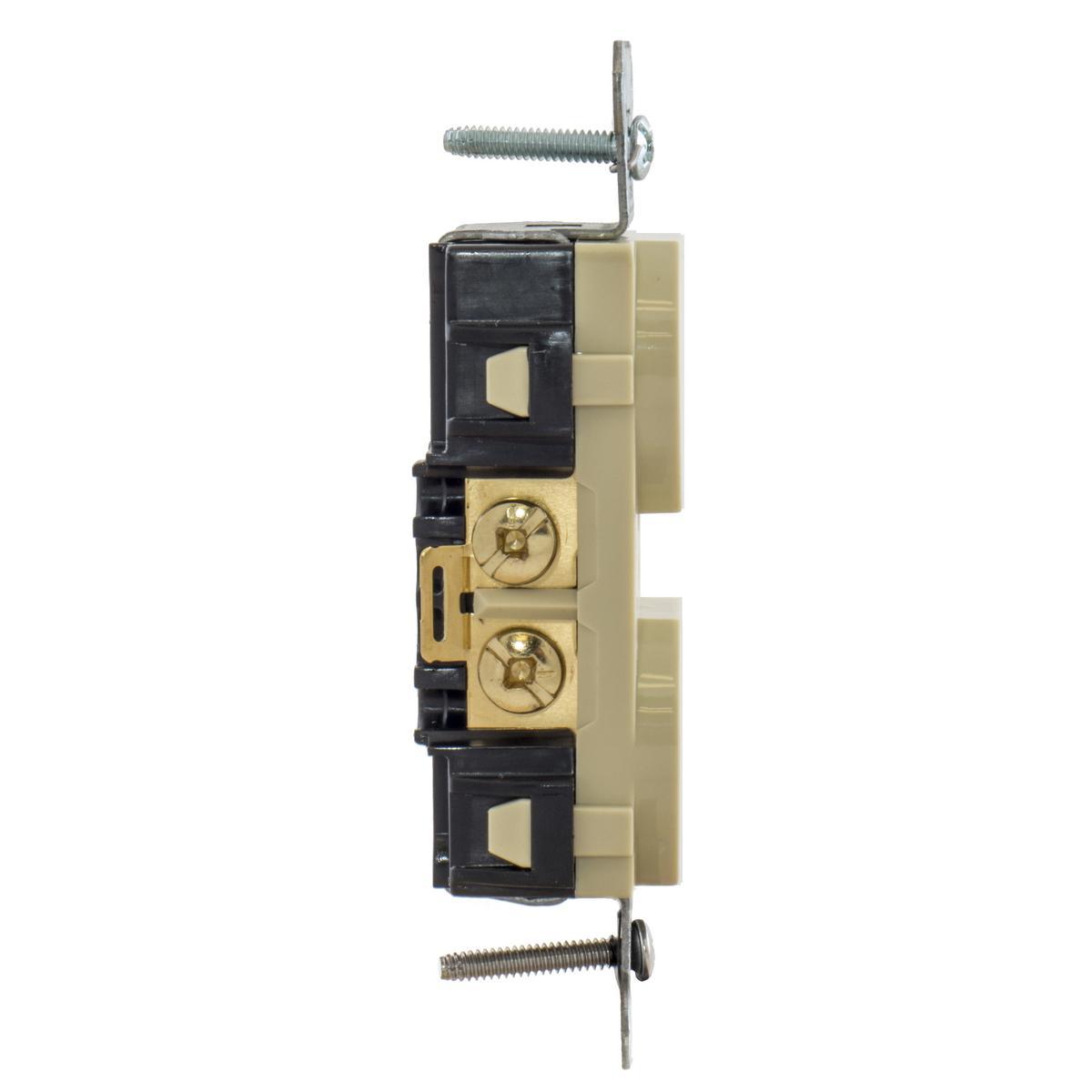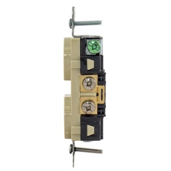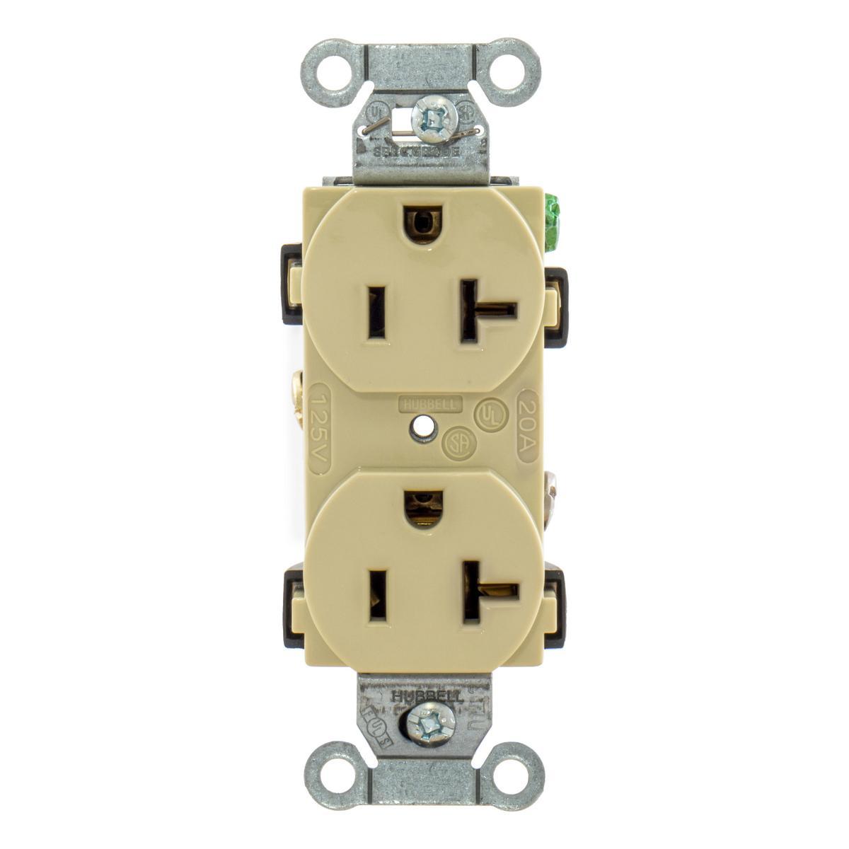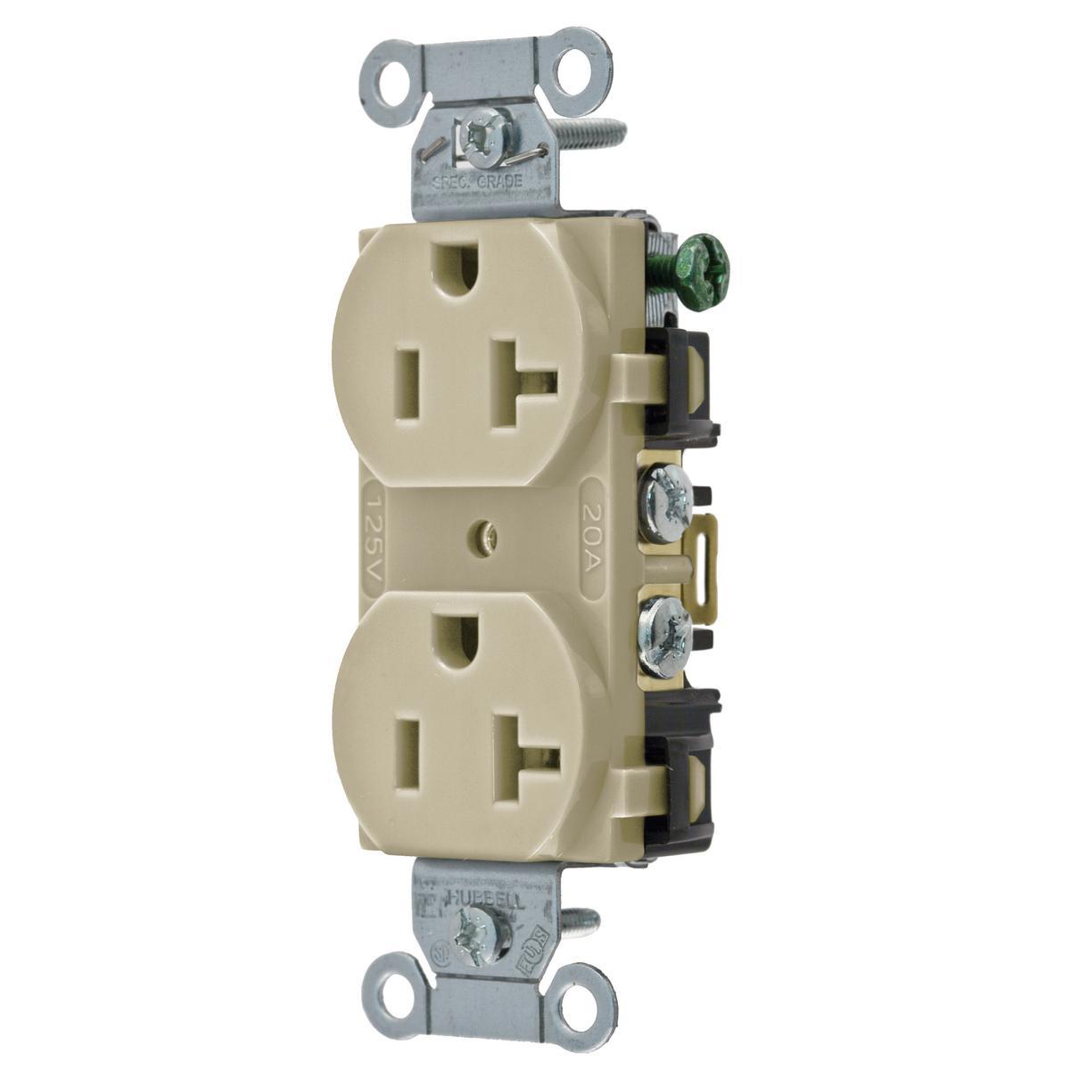 Wiring Device-Kellems BR20I 1-Phase Duplex Self-Grounding Standard Traditional Screw Mount Straight Blade Receptacle, 125 VAC, 20 A, 2 Poles, 3 Wires, Ivory