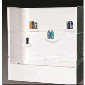 Oasis® TS3P-6030R VURSA kd 3-Piece Tub-Shower with 16 in Apron, 60 in Width x 30 in Depth x 76-1/4 in Height, Fiberglass Composite, Sanitary Grade Polyester Gelcoat Surface, 2 in Diameter Right-Hand Drain, White