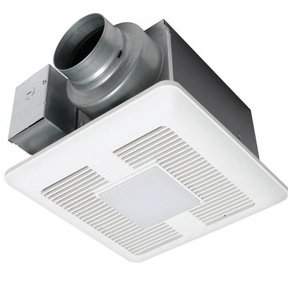 Panasonic WhisperCeiling® DC™ Ventilation Fan/Light, Round Duct Square Grille, 120 VAC, 0.07/0.11/0.12/0.18/0.19/0.26 A, LED Lamp, 10 W Lamp, 50000 hr Average Life, Warm White Light, 3000 K Color Temperature, 90 CRI, Ceiling Mounting, 50/80/83/100/110 cfm Air Flow, Zinc Aluminum Magnesium Housing Material, 10-1/4 in L x 10-1/4 in W x 7-3/8 in H Dimensions