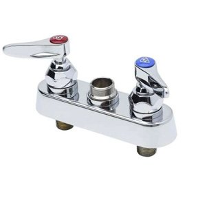 T & S Workboard Faucet, 2.2 gpm Flow Rate, 4 in Center Distance, Tubular Spout, Lever Handle, 2 Handles, 2 Faucet Holes, 1 in Faucet Hole, 1/4 in Connection, MNPT Connection, 1/4 in Maximum Deck Thickness, Deck Mounting, Quarter Turn Eterna Compression Cartridge, Brass, Polished Chrome, Domestic, Commercial Commercial/Residential
