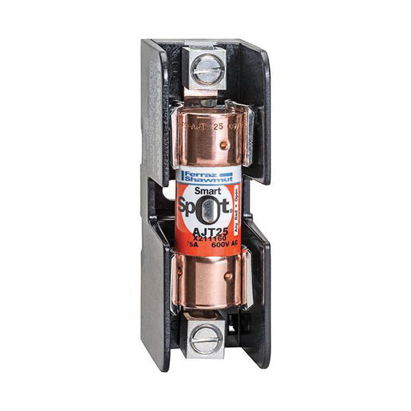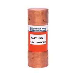 Amp-Trap 2000® AJT fuses provide non-indication as well as a SmartSpot® visual open fuse indicator. With advanced material technology the AJT fuse provides IEC Type 2 No Damage protection to main, feeder and branch circuits, for all types of loads - yet, they require only half the mounting space needed for 600 VAC Class RK fuses. AJT's time delay characteristics are ideal for handling typical motor and transformer inrush currents, while also providing superior current-limiting ability.15A 600V TIME DELAY J FUSE NIN