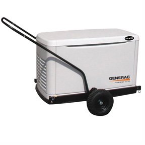 The generator transport cart is designed to allow a single individual to move and position any of the air-cooled generators without the need for additional people or equipment. Large wheels and a wide handle take the strain off transportation. By attaching the cart to the generator through the lifting holes, the generator is lifted from the pallet by leverage and is easily wheeled to the appropriate location for final setting. The cart is compatible with any air-cooled Generac model.