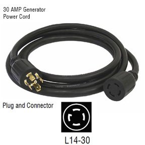 30A Power Cord w/ NEMA L14-30 Plug & Conn. for Portable Generator Max. 7.5 kW, 10 ft. Length