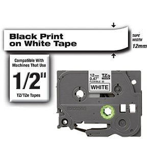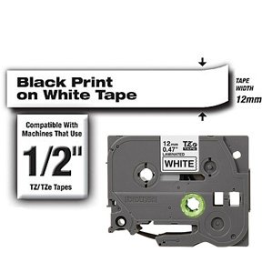 Laminated Tape for P-Touch<br />Color: Black on White<br />Size: 1/2" W X 26.2' L<br />Series: Tze