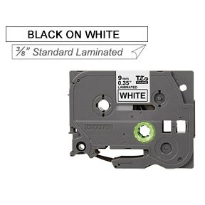 Laminated Tape for P-Touch<br />Color: Black on White<br />Size: 3/8" W X 26.2' L<br />Series: Tze