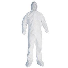 EMC Hooded Coverall, Disposable, XL Size, White, Polypropylene, Front Zipper Closure