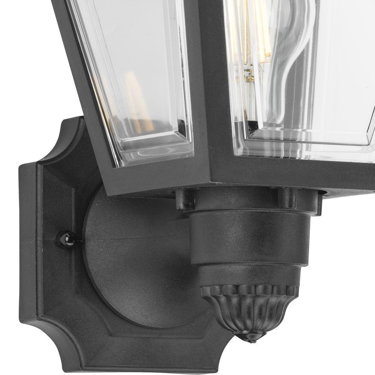 Progress Lighting® Wall Lantern, Casual/Transitional/Traditional Utility, 75 W Wattage, 120 VAC, A19 Incandescent Lamp, Medium Lamp Base, Black, Powder Coated/Painted Lamp, 4-1/2 in W x 7-1/4 in H Dimensions, 1 Lamps, Polypropylene