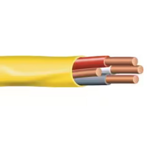 Southwire® Romex® SIMpull® Type NM-B Non-Metallic Sheathed Cable With Ground Wire, Coil Packaging, 600 VAC, (3) 12 AWG Solid Copper Conductor, Cut Piece, Yellow
