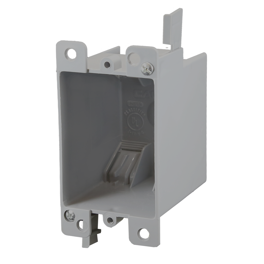 CANTEX® EZ-Box® Outlet Box, 1 Gang, 4 Knockouts, EZ Retainer Mounting, 14 cu-in Capacity, PVC, Gray, 3 in L x 2-1/4 in W x 2-7/8 in D Dimensions