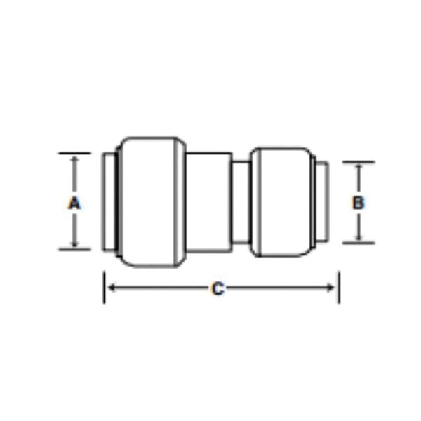 Sharkbite® Pipe Reducing Coupling, Fitting/Connector Type: Reducing Coupler, 1 x 3/4 in Nominal, Push-Fit, 200 psi, 200 deg F, Brass, Natural Brass/Polished Chrome, 2.51 in L, Import