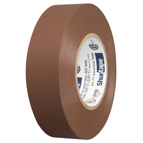 Shurtape 104705 EV 77C Colored Professional-Grade Electrical Tape, 66 ft L x 3/4 in W, 7 mil THK, Non-Corrosive Rubber Based Adhesive, Polymeric PVC Backing, Brown