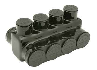 Penn-Union IPBB-NA750-4D Aluminum Black Pre-Insulated Power Bar - Four Ports with Double Sided Conductor Entry 2 Str. to 750 kcmil