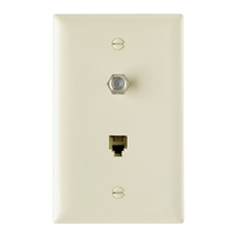On-Q® Combination Wallplate, 1-Gang, Series: TPTELTV, Flush Mount, (1) F-Type Coaxial Connector/(1) 4-Conductor RJ11 Telephone Jack Configuration, Ivory