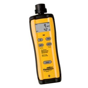 Fieldpiece Carbon Monoxide Detector, 0 to 1000 ppm (Continual Use)/0 to 2000 ppm (5 min Max Exposure), Alarm: Audible/Visual, Bright Blue Backlit Dual, 32 to 105 deg F Operating, Alkaline Battery