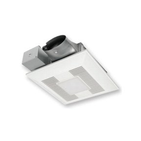 Panasonic WhisperValue® DC™ SmartFlow™ Ventilation Fan/Light, 120 VAC, 0.39 A, LED Lamp, 10 W Lamp, 50000 hr Average Life, Warm White Light, 3000 K Color Temperature, 90 CRI, Ceiling Mounting, 733/856/954 rpm Fan Speed Control, 50/80/100 cfm Air Flow, 4 in Fan, Steel Housing Material, Low Profile, 10-1/4 in L x 10-1/4 in W x 3-3/8 in H Dimensions