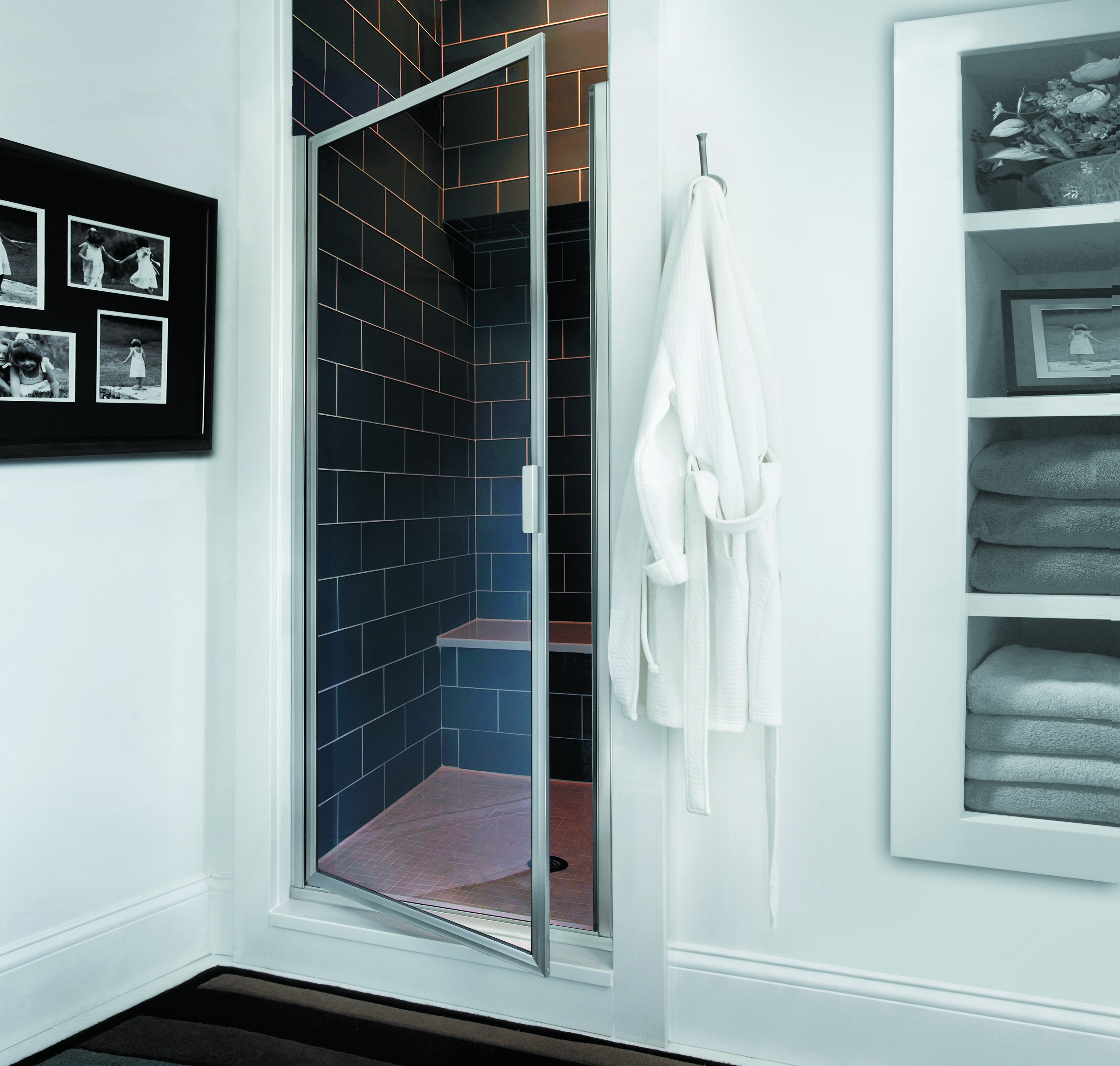 The Deluxe framed glass shower enclosure has proven performance of style and function. The single panel shower door has anodized aluminum hardware that helps prevent rusting or corrosion. The door has a magnetic handle that latches to the unit's framing and drip rail system at the bottom of the door includes a channel that returns water back inside the shower. The continuous hinge runs the entirety of the door providing a more stable opening experience.